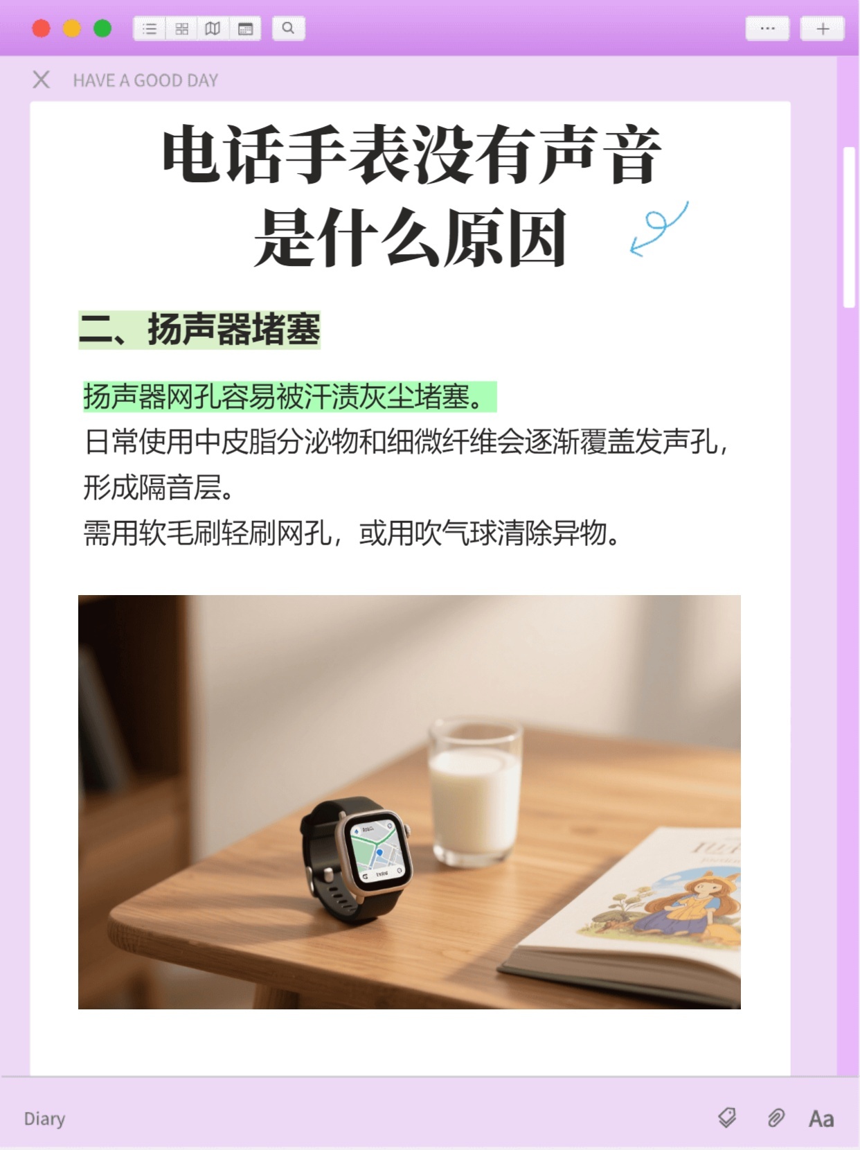 电话手表来电话没声音怎么回事电话手表来电话无声可能是由于静音模式、音量调至最低或扬声器问题所致。可检查设置、调高音量,若仍无法解决,可能是手表硬件问题,建议联系售后或专业维修。... 2026-03-07 - [阅读全文]